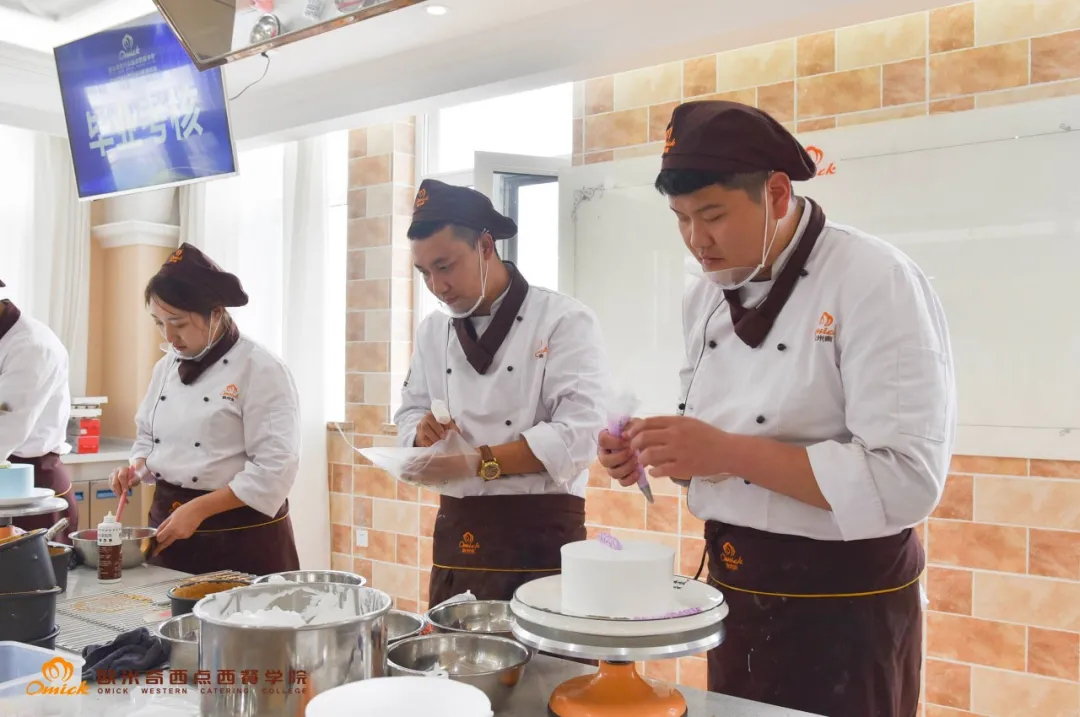 在欧米奇你不仅可以学到常温蛋糕、韩式裱花技法、奶油裱花技法,还可以学到大型翻糖、法式甜品、各类网红点心、伴手礼、冰淇淋、巧克力等千余款市场流行产品的制作方法。